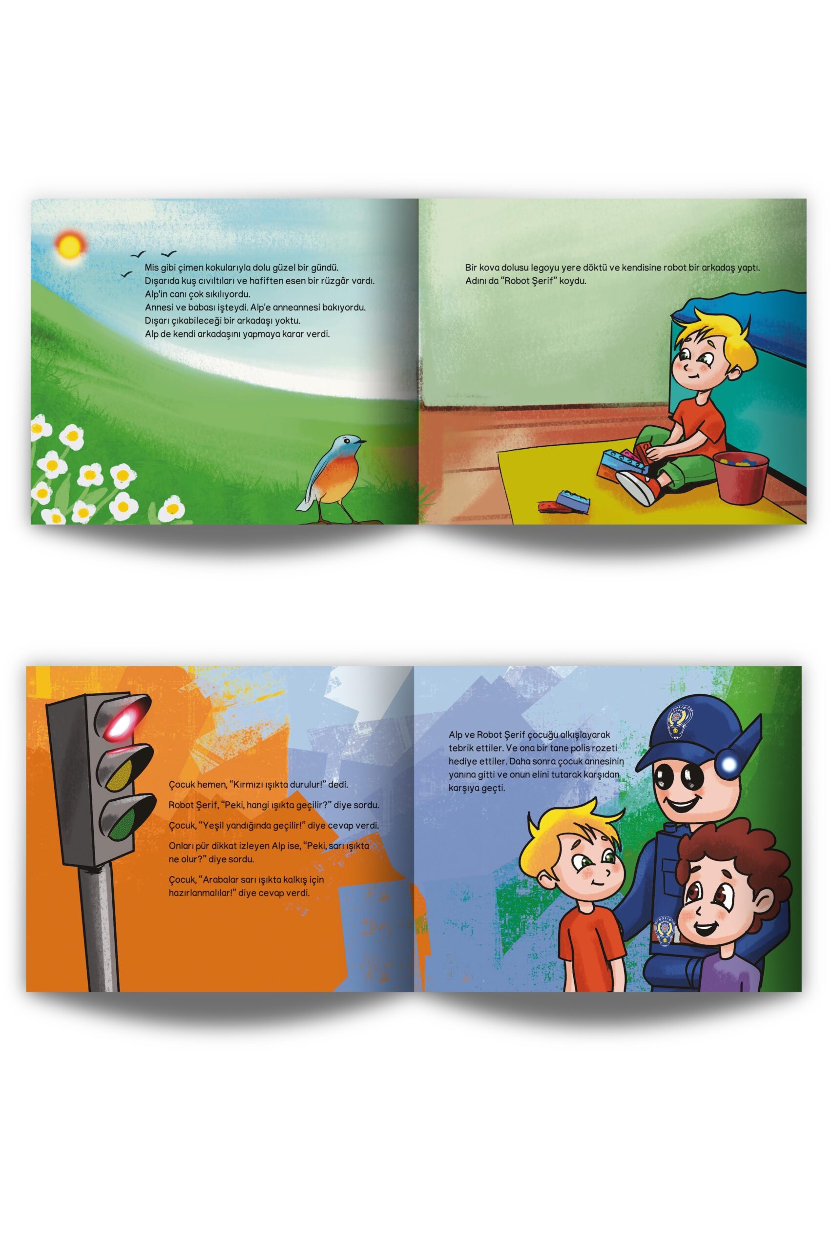 Alp’in canı çok sıkılıyordu. Dışarı çıkabileceği bir arkadaşı yoktu. Legolarla kendi arkadaşını yaptı ve adını da ‘’Robot Şerif’’ koydu. Onunla oynarken ‘’Alp!’’ diye bir ses duydu. Etrafına bakındı ama sesin nereden geldiğini anlayamadı. Yoksa Alp’e seslenen Robot Şerif miydi?