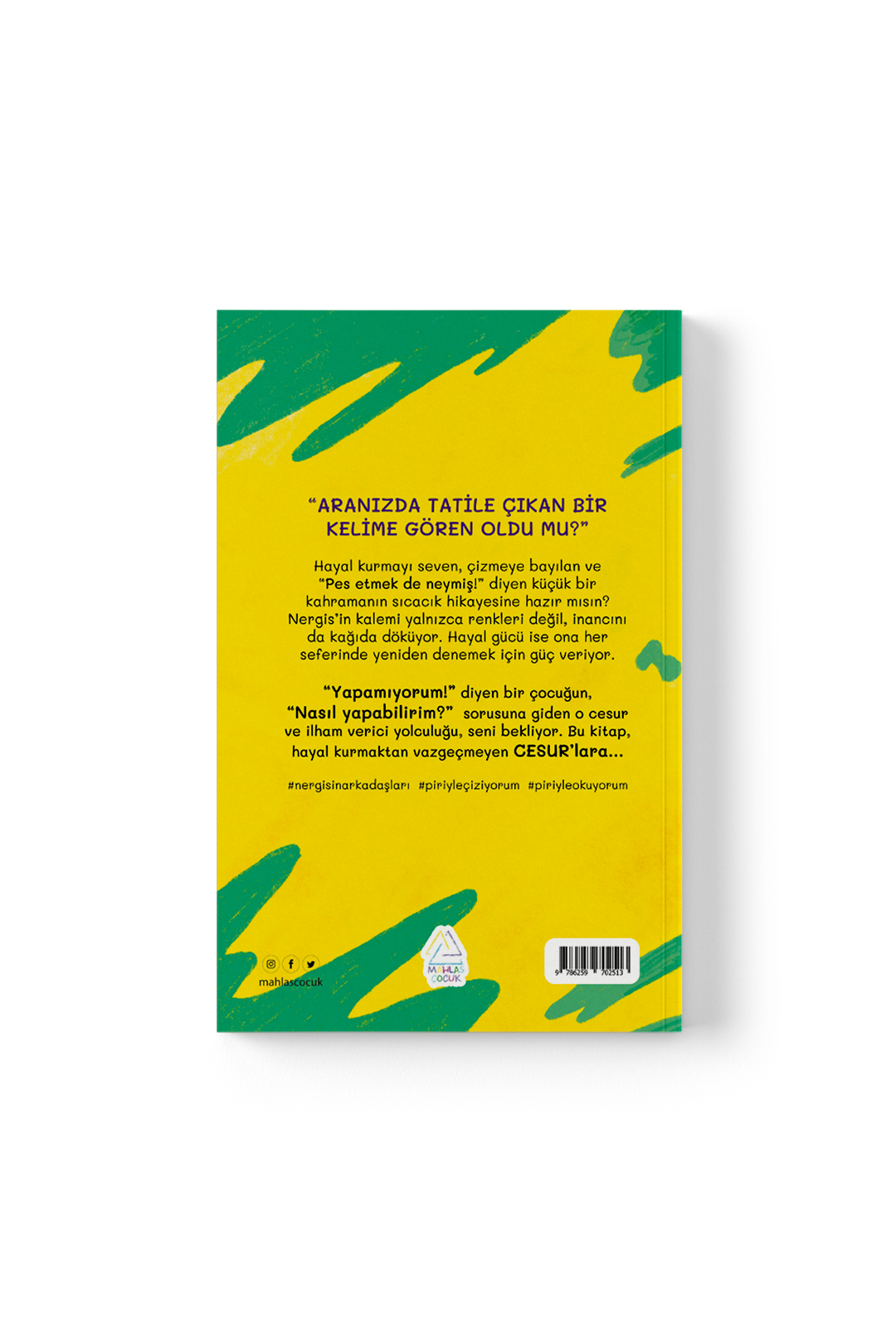 Bir resim yarışması, kaybolan çizimler, maviye boyanmış bir yüz, sarı bir merdivenle verilen sabır dersi ve mutfaktan gelen bir plan tarifi … Bu kitapta “Yapamıyorum!” diyen bir çocuğun, “Nasıl yapabilirim?” sorusuna giden yolculuğu var.